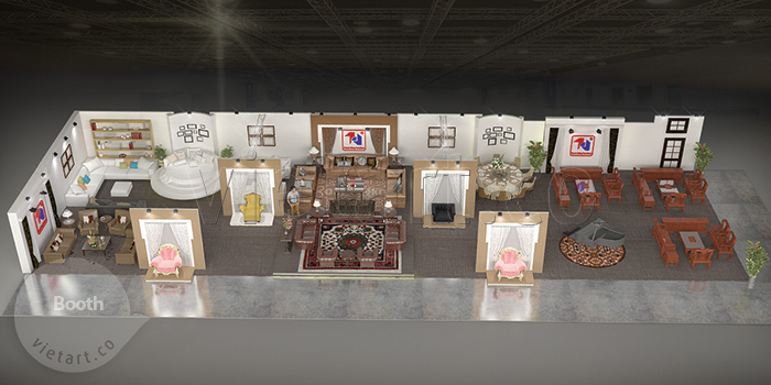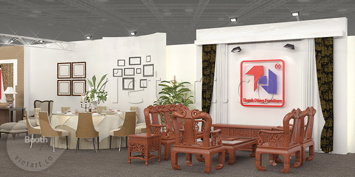 Thiết kế gian hàng tham giam gia triển lãm hiệu quả với diện tích lớn view được 3 mặt chính. Thanh Dũng funiture là một trong những booth tham gia hội chợ triển lãm đẹp và hiệu quả, nhấn mạnh và show được hầu hết sản phẩm trưng bày cũng như thể hiện nổi bật phong cách trưng bày và giàn dựng của khách hàng.