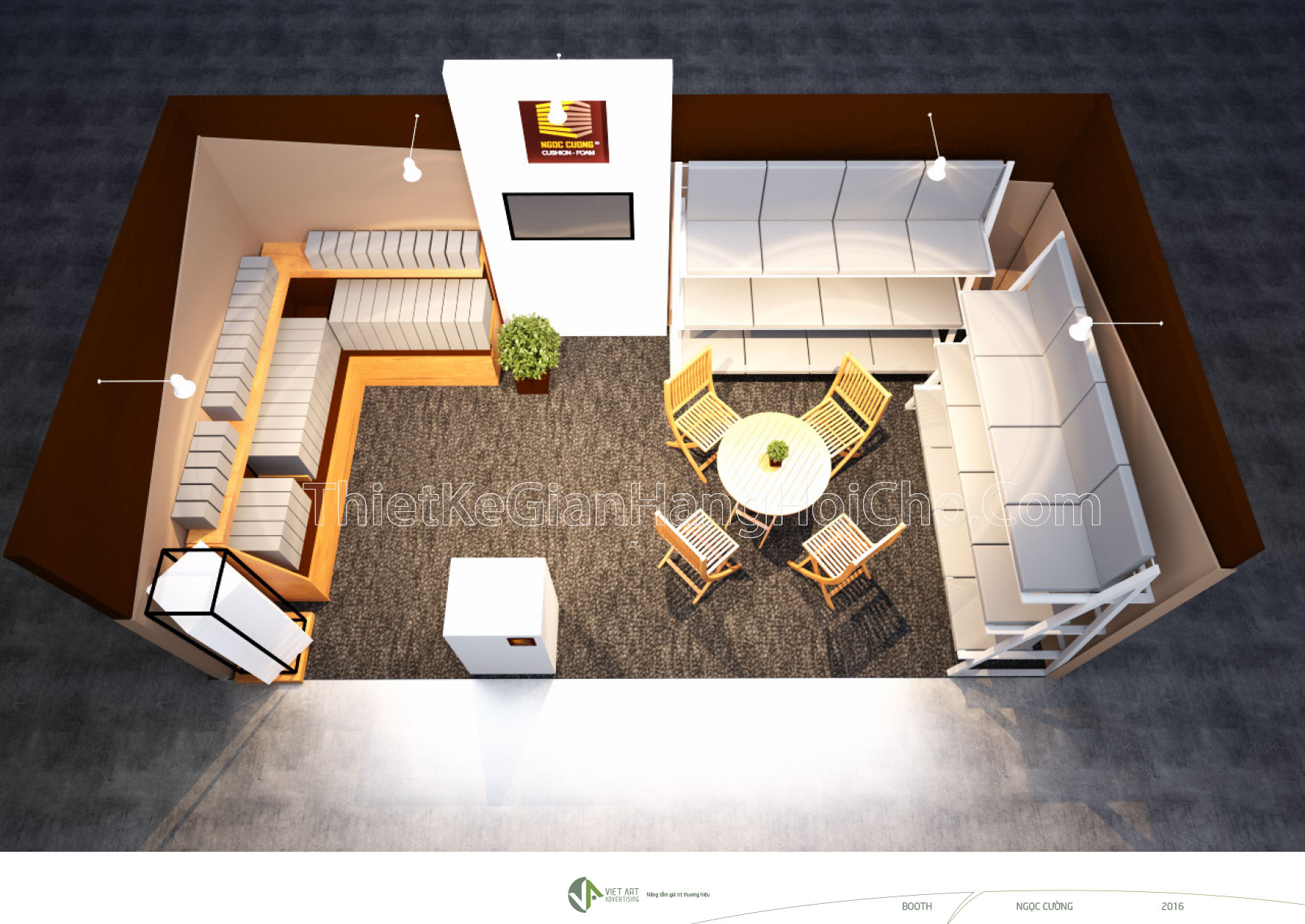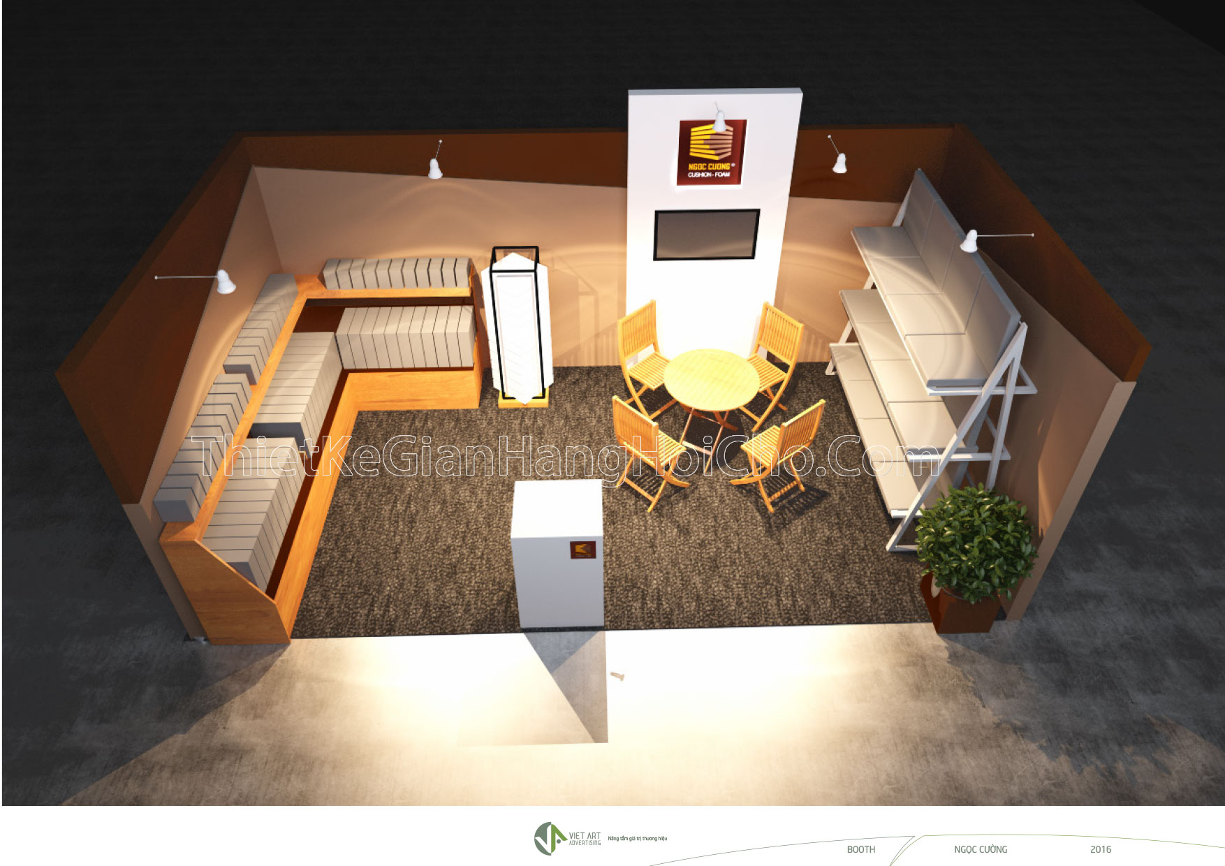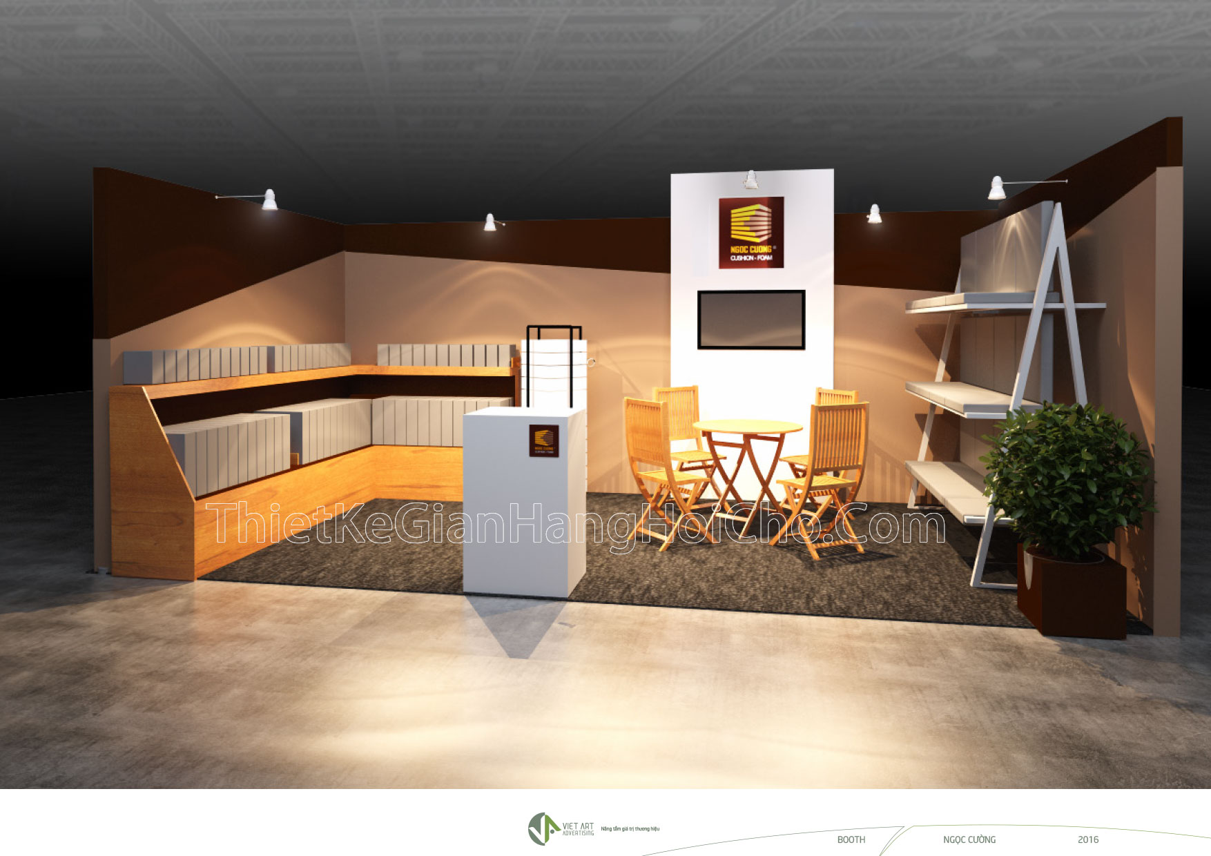 Hình ảnh thiết kếthi công gian hàng hội chợ triển lãm VIFA 2016, đơn vị tham gia Công Ty Ngọc Cường. Booth quảng cáo gian hàng thường có kích thước nhất định. Tùy vào không gian chung của siêu thị, hội chợ triển lãm. Booth triển lãm độc đáo sẽ giúp cho thương hiệu được nhận diện nhanh chóng. Hội chợ triển lãm hay hội chợ thương mại diễn ra sôi nổi hàng năm tại khu vực TP.HCM. Bởi lẻ giá trị marketing thương hiệu và hiệu quả bán hàng tăng nhanh.